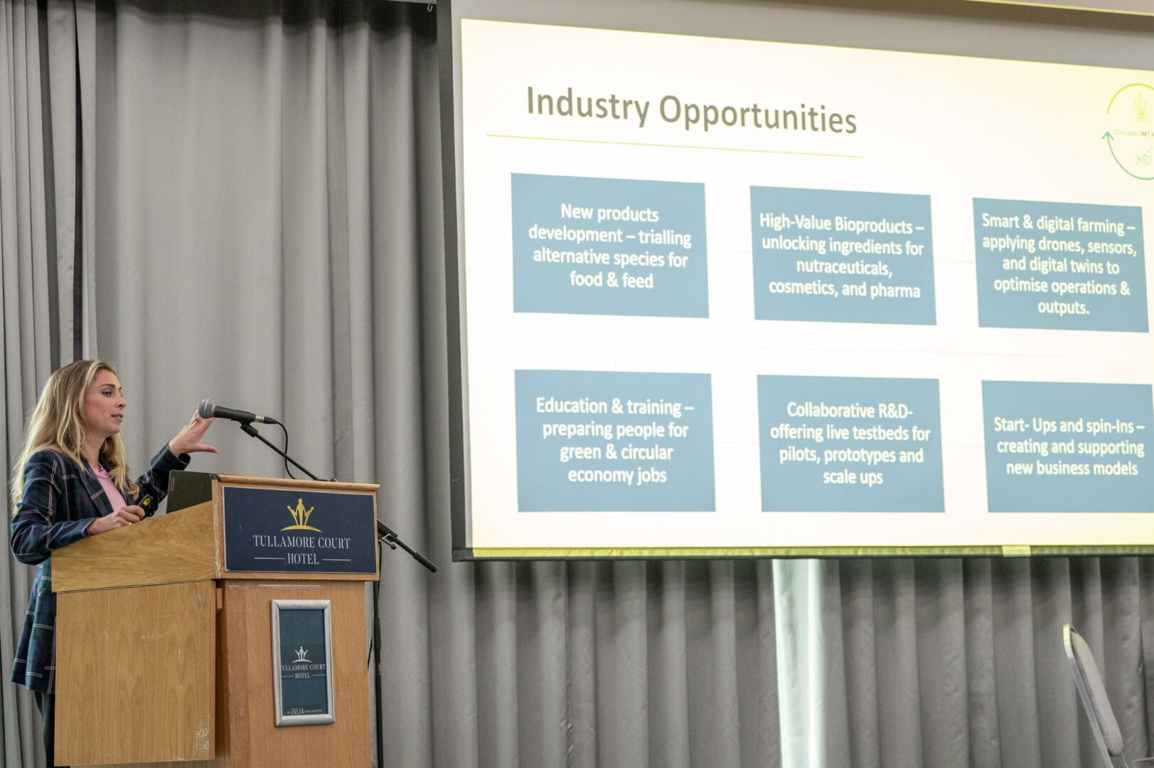 We were delighted to have such wonderful speakers contributing to panel discussions on the day. Dr Gillian Barry, Head of Innovation and Enterprise at Technological University of the Shannon, and Aine O Donnell, Project Manager on the Mount Lucas Circular Aquaculture bioeconomy project, emphasised the need for long-term investment in the bioeconomy to stimulate activity across Ireland.