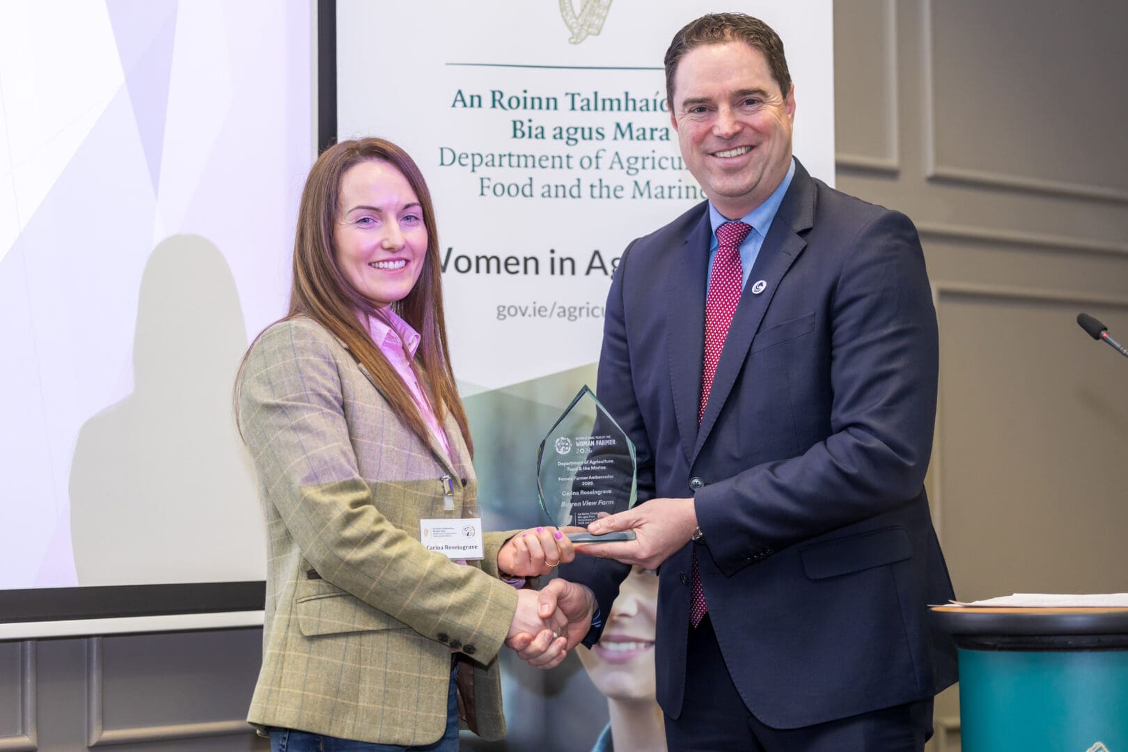 The conference provided a platform to recognise the critical role women play in global agrifood systems, share experiences, encourage participation and showcase leadership among women in agri-food sectors. Women are central to food security, nutrition and economic resilience and IYWF 2026 provides a platform to spotlight their essential role in agrifood systems. The highlight of the day was the announcement of the IYWF 2026 Ambassador, Carina Roseingrave of Burren View Farm, Co. Clare. The role is an opportunity to share knowledge, goals and lived experience and to represent Irish women farmers on a national and global stage.